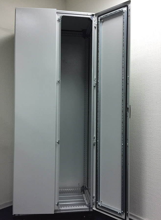 Шкафы могут быть одностворчатые, двухстворчатые, а также открываться с двух сторон с передней и задней стороны шкафа. Установка дверей может быть как правосторонняя, так и левосторонняя (для однодверных шкафов). Двери шкафа могут быть: глухие, с обзорным стеклом, перфорацией, технологическими и вентиляционными отверстиями. Боковые стенки могут быть: глухие, с перфорацией, технологическими и вентиляционными отверстиями. Замки могут быть как обычные с поворотной ручкой и тягами и с эргономичной ручкой и тягами. Механизм запирания двух точечный на тягах.