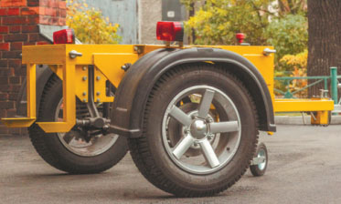 - Независимая пружинная подвеска транспорных и измерительного колес обеспечивает плавность движения в измерительном режиме и возможность буксирования установки